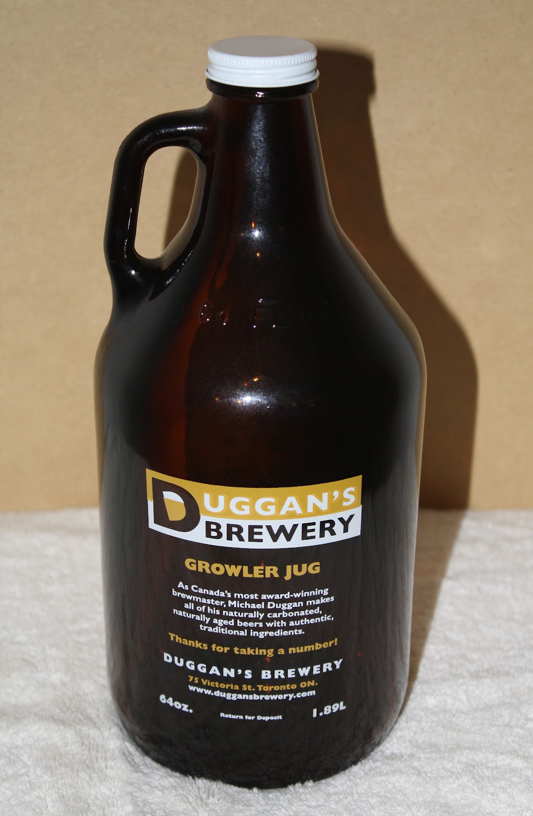 I've previously brought up the fact that I've started collecting Canadian breweriana, posting a quick photo display of some of the old bottle openers I've accumulated over the years. However, it's growlers from Canadian breweries that I'm really into. (Don't ask me why)